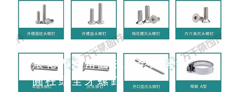 DIN912內六角圓柱頭螺釘,對應GB70-85。DIN931六角頭螺栓(半牙),對應GB5782-86。DIN933六角頭螺栓(全牙),對應GB5783-86。DIN934六角頭螺母(1型),對應GB6170-86。 柱端機米)、沉頭內六角螺釘(平杯)、半圓頭內六角螺釘(圓杯)、十字槽盤頭機螺釘、十字槽沉頭機螺釘、十字槽大扁頭機螺釘、十字槽盤頭自攻釘、十字槽沉頭自攻釘、十字槽大扁頭自攻釘、全牙絲桿(牙條)、六角螺母、法蘭